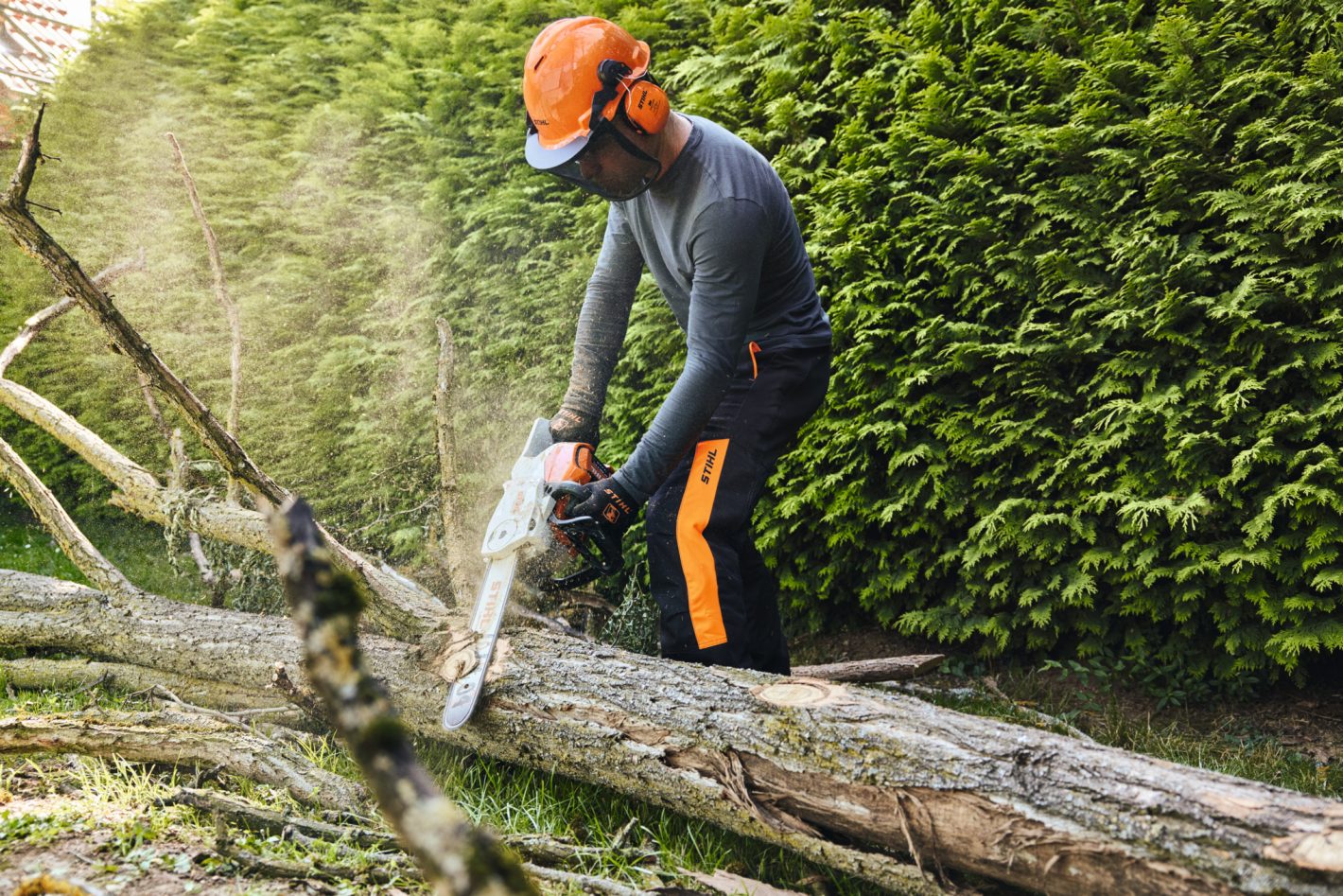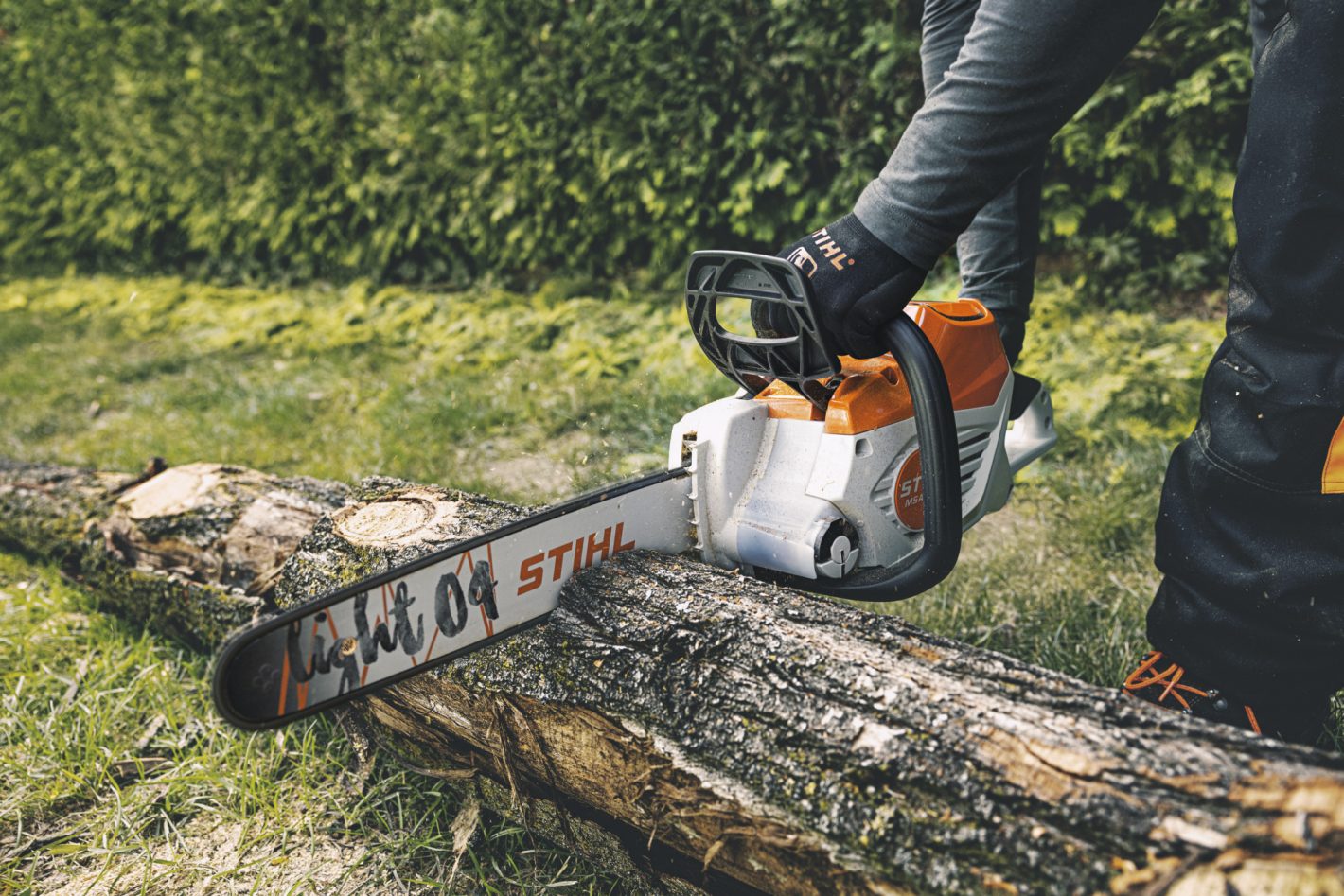 STIHL MSA 220 C-Bは、STIHLのプロフェッショナルユーザー向けバッテリーチェンソーの中で最高のカッティングパフォーマンスを誇る最新モデルです。新型バッテリーAP 300 S とフルチゼルソーチェン3/8“ PS3 との組み合わせにより、カッティングパフォーマンスが大幅に向上しました。林業での小径木の伐木や枝打ち作業はもちろん、造園業での街中の剪定作業や、公園管理、街路樹整備、薪づくりまで、様々な用途で活躍します。